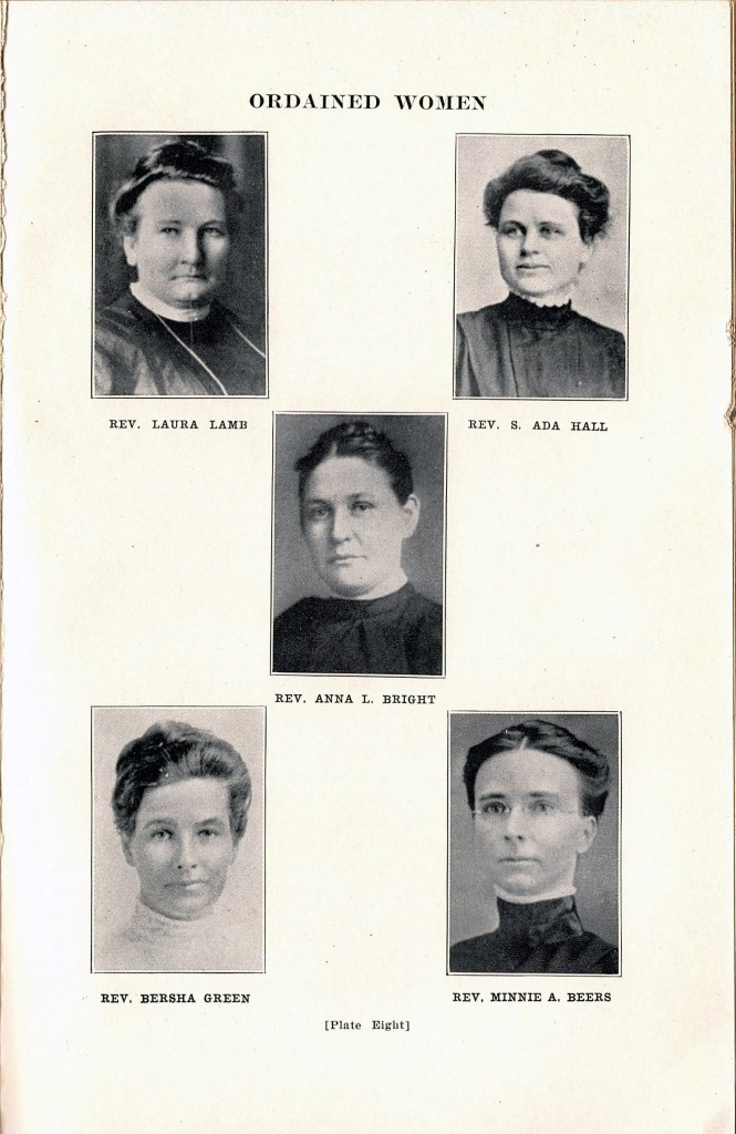 When the first women were ordained deacons in 1913, Bishop Burton Jones, a supporter of women preaching, wrote a front-page editorial in The Free Methodist applauding the accomplishments of the first five women ordained. Jones chose to identify Laura Lamb, Ada Hall, Bersha Green, Anna Bright, and Minnie Beers as “Reverend,” but there is no indication this was an official title used by the denomination as annual conference appointments continued to use the terms “Miss” or “Mrs.” for all women appointed to circuits. The title “Rev.” only appears by ordained elders in annual conference minutes.2 Women and men who used the title “Rev.” to refer to women deacons were making a clear rhetorical move to grant women increased credibility in their ministries.